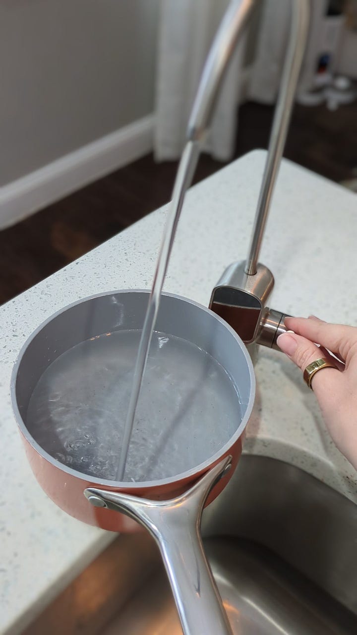 Fill pot halfway with water Pro tip: You just need enough to cover the eggs